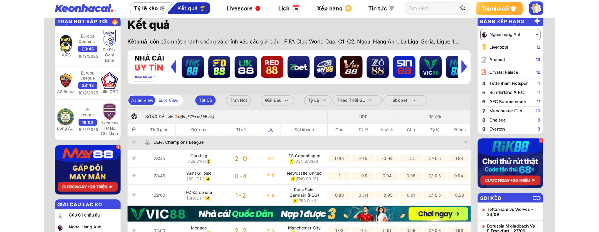 bảng xếp hạng