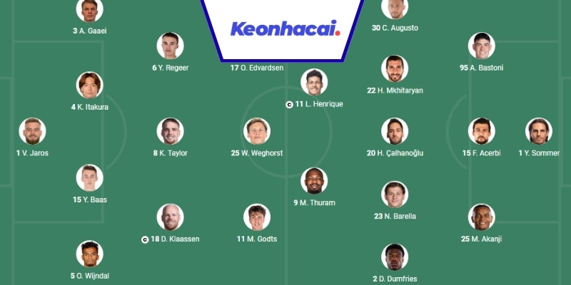 | Cầu thủ ra sân | V. Jaros, Gaaei, Itakura, Y. Baas, Wijndal, Regeer, Taylor, D. Klaassen, Edvardsen, Godts, Weghorst | Sommer, Acerbi, Bastoni, Akanji, Dumfries, Carlos Augusto, Barella, Çalhanoğlu, Mkhitaryan, L. Henrique, Thuram |