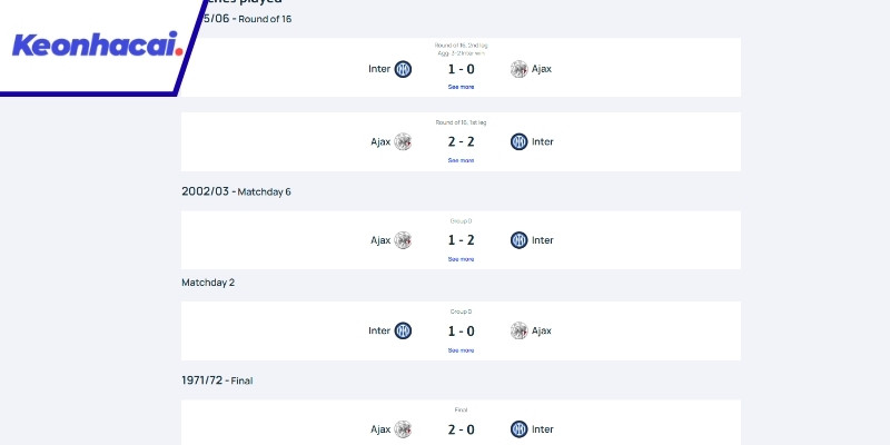 Các trận đấu gần nhất cho thấy Inter tận dụng cơ hội tốt hơn. Họ có thể biến sự chắc chắn nơi hàng thủ thành nền tảng để giành chiến thắng tối thiểu hoặc vượt qua đối thủ ở những loạt trận căng thẳng. Ajax nhiều thời điểm đã chơi bùng nổ, đặc biệt khi được đá trên sân nhà, nhưng sự non nớt trong việc kết thúc trận đấu khiến họ không thể duy trì ưu thế.