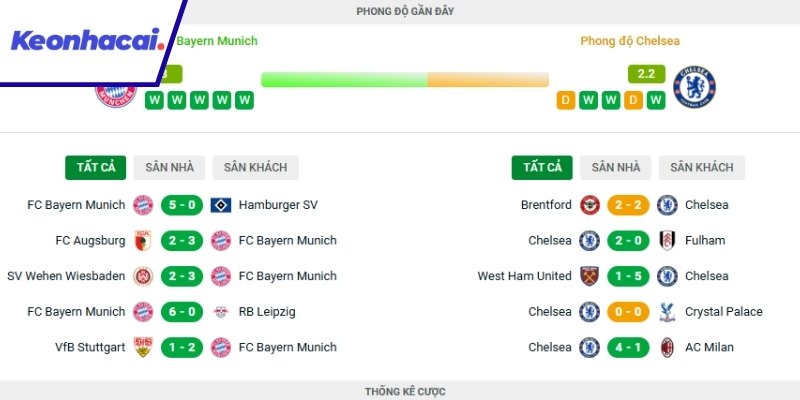 Kèo Tài XỉuTài 2.75Bayern có hàng công cực kỳ mạnh mẽ và khả năng ghi bàn luôn hiện hữu. Tuy nhiên, Chelsea có thể gây khó khăn với lối chơi phòng ngự chặt chẽ.