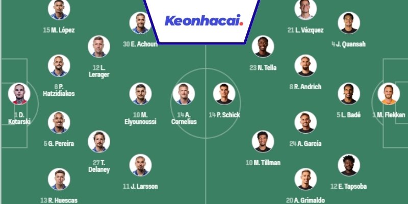 Cầu thủ ra sân | Kotarski, López, Hatzidiakos, Lerager, Achouri, Delaney, Elyounoussi, Cornelius, Larsson, Pereira, M. López | Flekken, Vázquez, Quansah, Tapsoba, Grimaldo, García, Andrich, T. Tillman, N. Tella, Schick, Diaby |