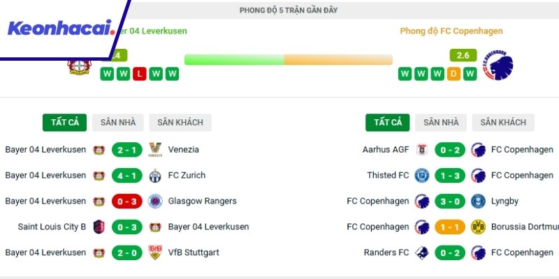 Phong độ gần đây của FC Copenhagen và Leverkusen